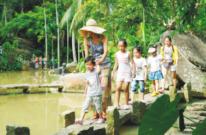 7月8日,家长带领放暑假的孩子在亚龙湾热带天堂森林旅游区参观游览。瞄准暑期旅游市场,我省各旅游企业做足文章,旅行社纷纷推出亲子游线路,各大旅游景点献上优惠套餐,酒店也大打亲子牌招揽游客。家庭亲子游成为我省暑期旅游市场卖点之一。 本报记者 王 凯 通讯员 黄庆优 摄