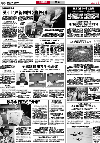 海南日报 世界新闻 综 合 006 2011-07-091 2011年07月09日 星期六