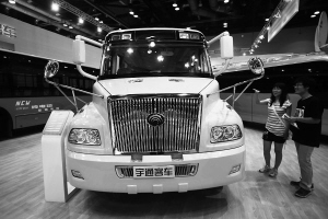 7月10日,一款黄色的“大鼻子”校车亮相在北京举行的第二届中国品牌汽车博览会。该款校车在造型上借鉴了欧美校车的长头设计,配备有专用停车信号臂、学童专用座椅、前后监护人座椅、前部补盲镜等安全配置,提高了学生乘坐的安全性。 新华社发