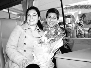 | 受到球迷的追捧,孔卡(右)和妻子两人非常高兴。小新发 |