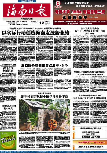 海南日报 头版 001 2011-07-121 2011年07月12日 星期二