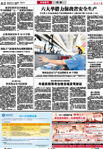 海南日报 本省新闻时政 002 2011-07-121 2011年07月12日 星期二