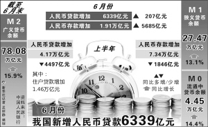 中国人民银行12日发布的《2011年上半年金融统计数据报告》显示,6月份我国新增人民币贷款6339亿元,同比多增207亿元。6月末广义货币(M2)余额同比增长15.9%,较5月末增速下降的趋势有所回升。同时,6月末国家外汇储备余额同比增长30.3%。
