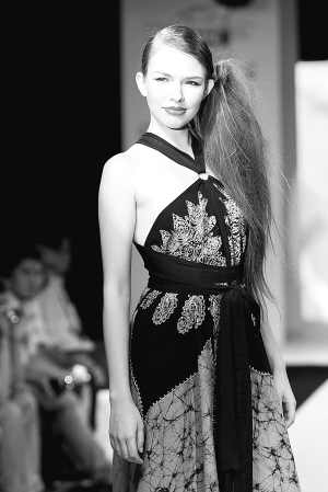 7月12日,在印度首都新德里国际展览中心,模特在展示时装。 第47届印度国际服装节于7月12日至14日在这里举行,来自世界各地的几十个服装厂商、设计师们参加了此次服装节。 新华社记者 李毅刚 摄