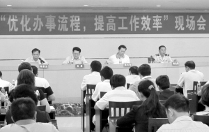 6月29日上午,儋州市“优化办事流程提高工作效率”现场会在该市国税局召开。市直机关、各乡镇共108个单位主要负责人参加会议。儋州市国税局在会上作了经验介绍。(潘运生 摄影报道)
