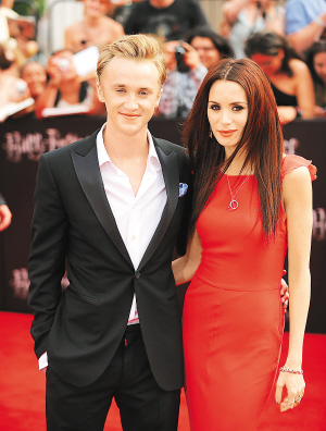 | 汤姆·费尔顿(左)抵达首映式现场。 |