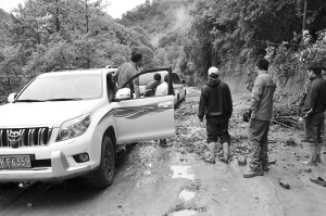 7月14日,受阻车辆在川藏公路波密县境内发生泥石流的路段等候通行。 7月13日,受持续强降雨影响,川藏公路“102”滑坡群和K4101-4150等5处路段相继发生泥石流和山体塌方,灾害导致多处路段交通中断。经担负川藏公路抢险保通任务的武警交通四支队抢修,截至14日14时已基本恢复车辆通行。 新华社发(汪巍 摄)