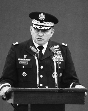 7月14日,在韩国首尔,新任驻韩美军司令詹姆斯·瑟曼在就任仪式上讲话。 当日,驻韩美军最高指挥官就任仪式在首尔龙山美军基地举行,美陆军司令部司令詹姆斯·瑟曼代替沃尔特·夏普出任驻韩美军司令。 新华社发