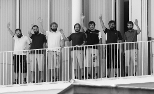 7月14日,7名获释的爱沙尼亚游客在黎巴嫩贝鲁特的法国使馆阳台上公开露面。 据黎巴嫩通讯社报道,7名爱沙尼亚游客在黎巴嫩遭绑架近4个月后于当地时间14日早晨在黎东部贝卡谷地的阿尔萨勒镇获释。3月23日,7名爱沙尼亚游客在贝卡谷地被持枪人绑架,这是黎近年来最严重的一次外国人绑架案。 新华社/路透