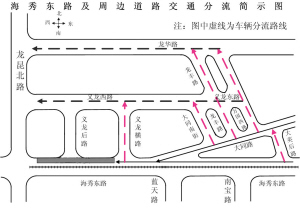 本报海口7月14日讯 (记者陈超 特约记者陈世清)由于海秀东路北半幅道路近期施工占用机动车道,海口市公安局交警支队发出提醒,建议驾驶员根据《海秀东路及周边道路交通分流简示图》绕道行驶。