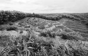 如今,六芹山遍植橡胶树,脚下的小路不时被水洼和枯枝截断。在翻过一道道丘岭后,一座地势稍显平缓的黑藤水岭进入眼帘,依旧是满眼的橡胶树,历史遗迹已无踪影。