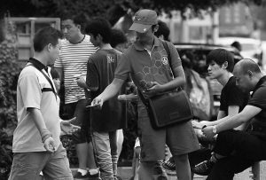 经粗略统计,发放小广告的“游击队员”大概有20人左右。在10分钟之内,每人最多发出上百张,最少的也有三四十张。