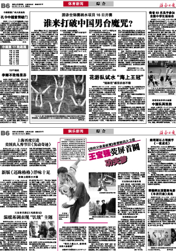 海南日报 体育新闻综合/娱乐新闻综合 014 2011-07-151 2011年07月15日 星期五