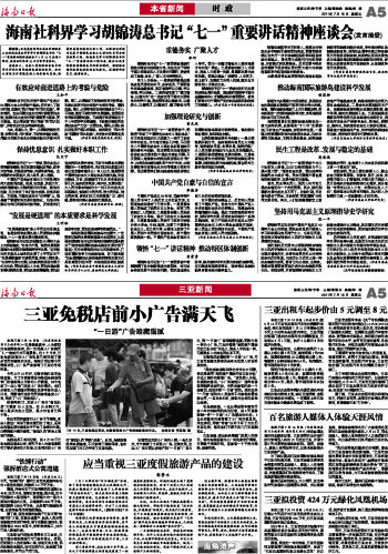海南日报 本省新闻时政/三亚新闻 005 2011-07-151 2011年07月15日 星期五