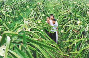 7月14日,琼海市火龙果生产现场会在该市阳江镇利试考村举行。据悉,琼海市从2005年开始引种火龙果,目前种植面积有4000多亩,计划在“十二五”期间建立万亩火龙果基地。图为各乡镇参会代表在火龙果园里参观学习。 本报记者 王凯 摄