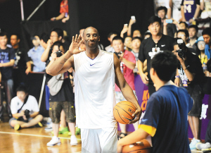 7月15日,NBA著名球星科比·布莱恩特在沈阳开启“2011科比中国行”之旅。他在沈阳的火车头体育馆出席球迷见面会,与广大球迷近距离接触。之后,他还将在长沙和南京继续“2011科比中国行”。图为科比(左)与球迷一起互动游戏。 新华社发