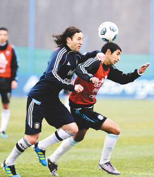 | 阿根廷队球员在备战美洲杯四分之一决赛中对乌拉圭的比赛。 新华社发 |
