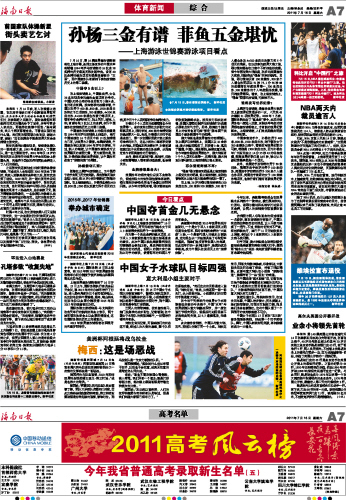 海南日报 体育新闻/高考名单 007 2011-07-161 2011年07月16日 星期六