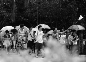 7月17日,一批批游客来到博鳌旅游观光。炎炎夏日,到海南享受清凉游的游客与日俱增,博鳌各景点游人如织。 特约记者 蒙钟德 摄