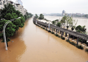 | 昌江河水漫入景德镇市区昌江西岸街区(2010年7月16日摄)。 新华社发 |