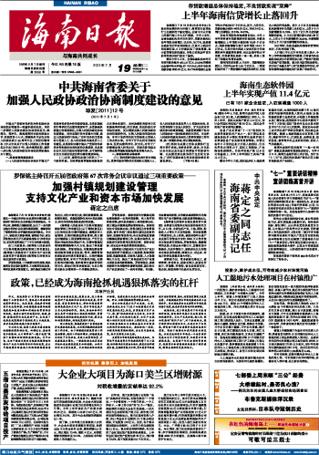 海南日报 首版 001 2011-07-191 2011年07月19日 星期二