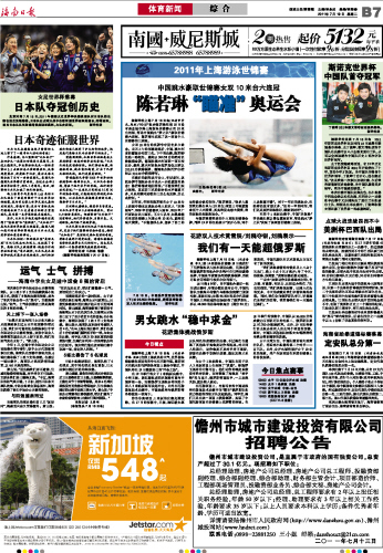 海南日报 体育新闻 015 2011-07-191 2011年07月19日 星期二