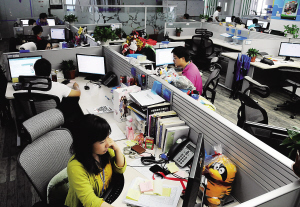 在深圳一家企业里,网民在上网(5月5日摄)。 新华社发
