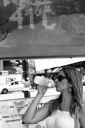 7月19日,在希腊首都雅典,一名女孩在街头喝水。雅典近日遭受今年第一波热浪袭击,19日的温度达到41摄氏度。 新华社发(马里奥斯·罗洛斯摄)