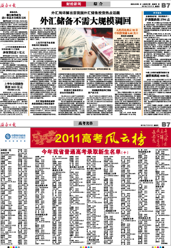 海南日报 高考名单 015 2011-07-211 2011年07月21日 星期四