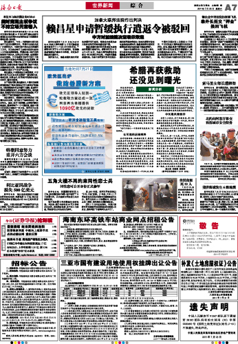 海南日报 世界新闻 综 合 007 2011-07-231 2011年07月23日 星期六