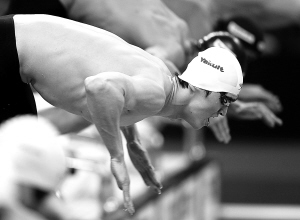 | 孙杨在比赛中入水。 新华社发 |