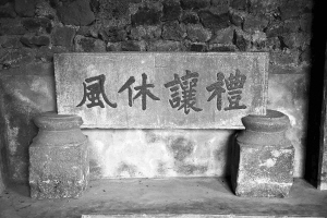 | 在暖心庐舍里,安放着“礼让休风”和“光分鳌极”两块石匾。 |