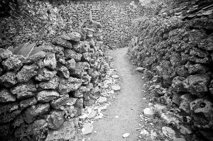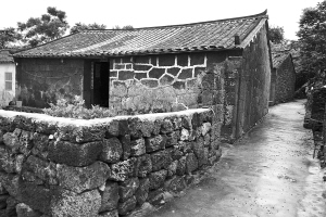 沿着村道的两侧,村民们重新规划修建起了自己的新屋。和村中两栋三百年前的老屋一样,今天的美社村人还是用脚下的火山石作为建筑房屋的主要材料。一块块并不规则的火山石,严丝合缝地砌在一起,让每一位来访者惊叹建房者的手工,堪比大自然的鬼斧神工。