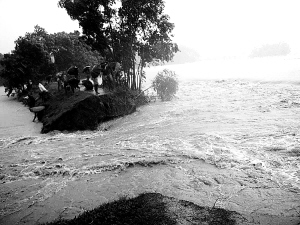 7月24日,在孟加拉国首都达卡,人们查看洪灾水情。孟加拉国许多地区近日遭遇洪水和暴雨侵袭,造成至少4人丧生、2人失踪、超过20万人受困。 新华社发