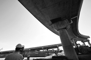 今天上午,记者在施工现场看到,项目工地上只见桥梁大部分骨架已成型,初步可见其横跨绕城高速的恢弘气势。据介绍,龙昆南立交上部结构完成65%,下部结构包括基础、桥墩、干梁等全部完成,预制梁完成572片,占总量的85%。
