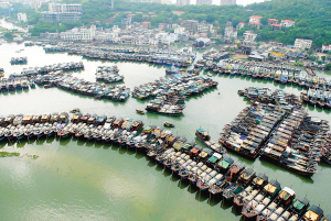 | 平时在三亚港停泊的渔船约有1000艘左右,交通及经营性游船约250余艘。图为渔船在三亚港避风。 本报记者 苏建强 摄 |