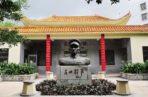革命烈士陵园一角,庄田纪念馆身披琉璃瓦肃立,一尊将军塑像守望着这片园地,他身上没有佩戴耀眼的勋章,塑像基座上叶飞将军的题字遒劲刚毅:庄田将军。