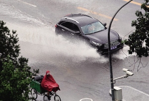 | 7月25日,北京继昨天降下暴雨后,今天再次遭受大雨袭击。 新华社记者 刘卫兵 摄 |