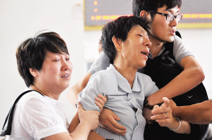 7月25日,几位刚刚确认亲人遇难消息的亲属伤心痛哭。新华社记者 鞠焕宗 摄