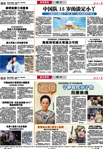 海南日报 体育新闻/娱乐新闻 016 2011-07-261 2011年07月26日 星期二
