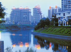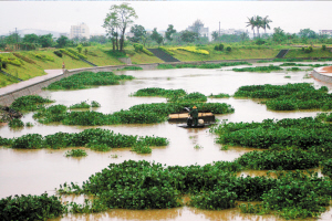 曾经污染严重水浮莲滋生的琼海万泉河支流加浪河,经过数年的治理,河里水浮莲已不见踪影,河水日渐清澈重荡清波,如今河两岸楼盘林立,鱼儿逐渐回游,成为市民休闲观光捕鱼的好去处。 左图:现在的加浪河水面洁净。(7月17日摄) 下图:曾经水浮莲泛滥成灾的加浪河。(2005年5月26日摄) 特约记者 蒙钟德 摄