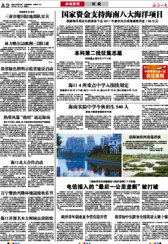 海南日报 本省新闻 002 2011-07-271 2011年07月27日 星期三