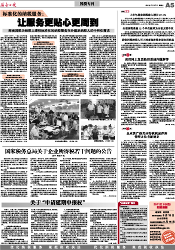 海南日报 国税专刊 005 2011-07-271 2011年07月27日 星期三