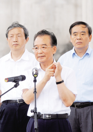 | 七月二十八日,中共中央政治局常委、国务院总理温家宝在温州甬温线特别重大铁路交通事故现场会见中外记者,并回答记者提问。 新华社记者 黄宗治 摄 |
