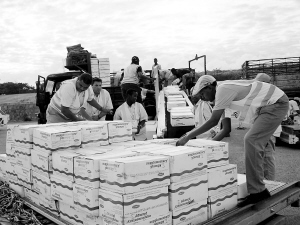 7月27日,在索马里首都摩加迪沙国际机场,工人搬运救援物资。 当日,联合国世界粮食计划署对索马里提供的首批干旱及粮食短缺救援物资运抵首都摩加迪沙国际机场,这是2009年索马里主要反政府武装组织“伊斯兰青年运动”对联合国驻索机构实施援助禁令以来,粮食计划署首次对索空运援助物资。 自去年以来,非洲东北部包括埃塞俄比亚、肯尼亚、索马里、苏丹等在内的“非洲之角”地区遭遇60年罕见的大旱,旱灾对索马里的打击尤为严重。 新华社/法新