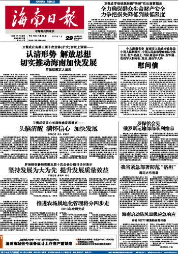 海南日报 头版 001 2011-07-291 2011年07月29日 星期五