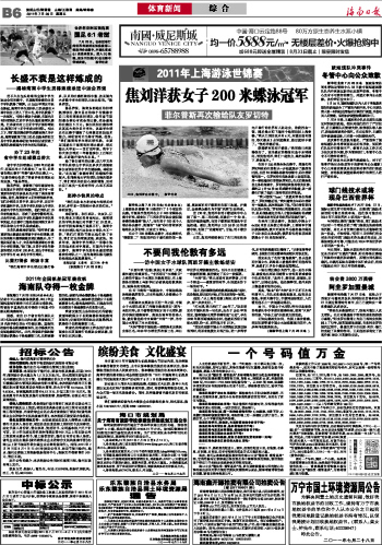 海南日报 体育新闻 014 2011-07-291 2011年07月29日 星期五