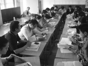 | 山高学校教师在教研会上认真聆听、做笔记。 |