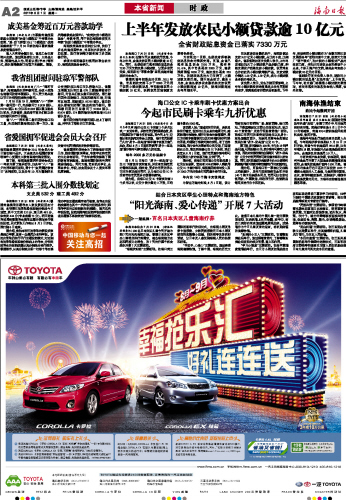 | 海南日报 本省新闻时 政 002 2011-08-011 2011年08月01日 星期一 |