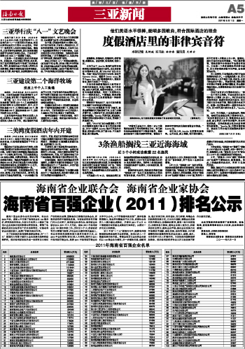 | 海南日报 三亚新闻 005 2011-08-011 2011年08月01日 星期一 |